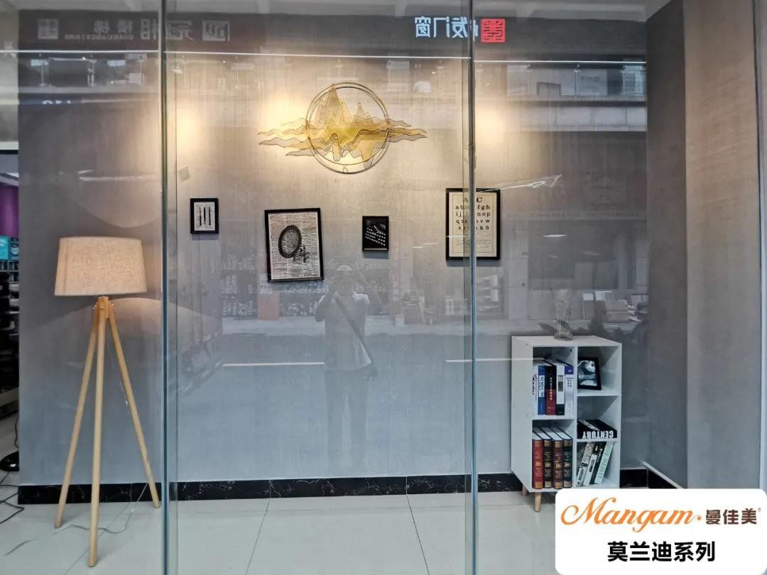 门店在装饰设计上,分别设置了两个橱窗展示区,更好地展现Mangam·曼佳美艺术涂料的效果,两个橱窗展示的效果分别莫兰迪系列和玛卡珑系列。