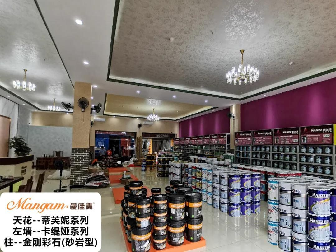 门店墙面设计是使用到浪漫之恋系列进行大面积装饰涂装。Mangam·曼佳美艺术涂料--浪漫之恋系列是一款非常适合大面积涂装的墙面装饰效果,实用和装饰为一体的艺术涂料。