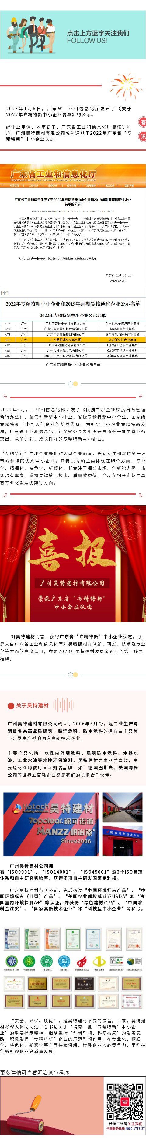 新年喜讯!祝贺我司获得“广东省专精特新中小企业”认定!