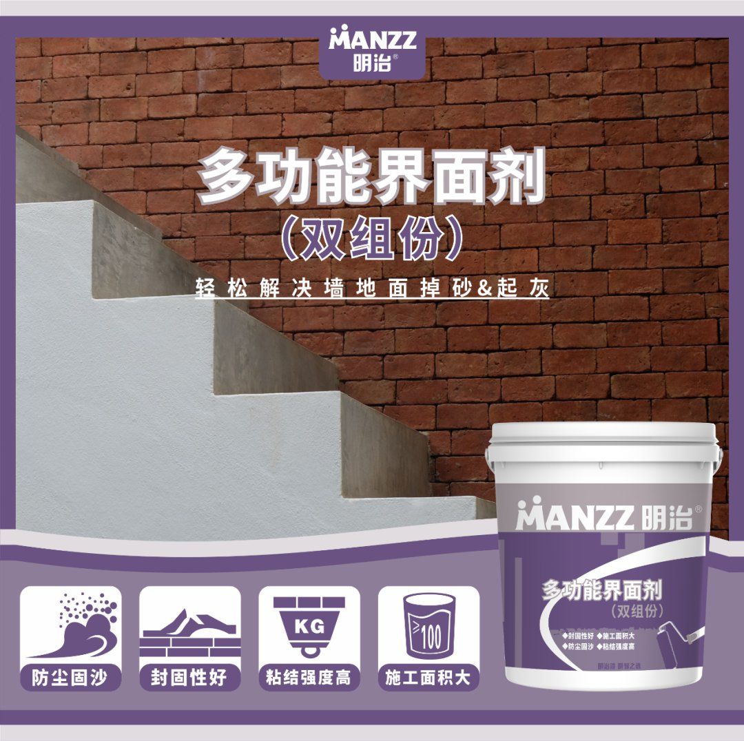 分别是纯丽净净味墙面漆、明治多功能界面剂、明治固砂宝以及明治瓷得丽美缝胶,