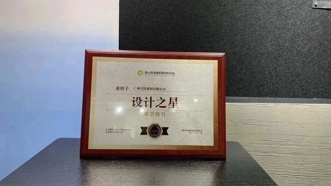 广州昊特建材有限公司在健康技术领域获得突出的成绩,荣获佛山市健康家居材料协会“设计之星”荣誉。