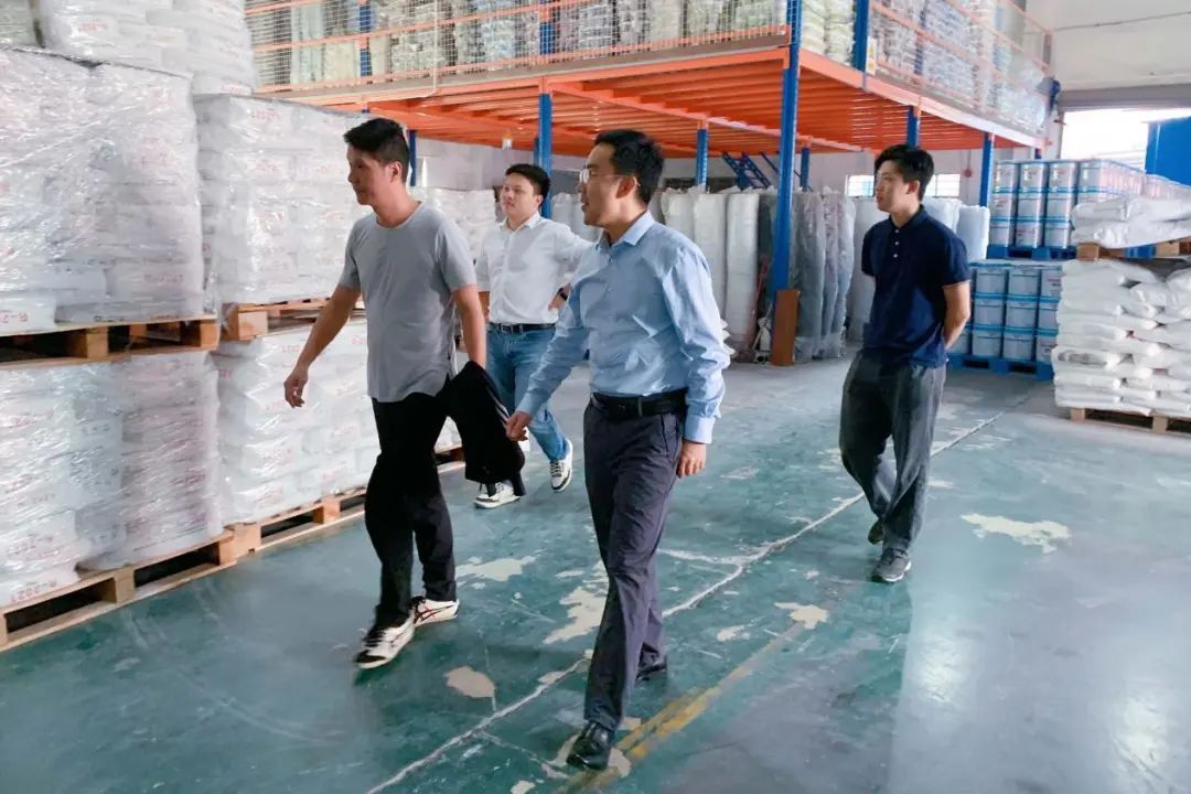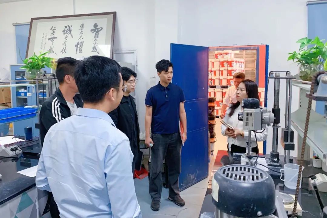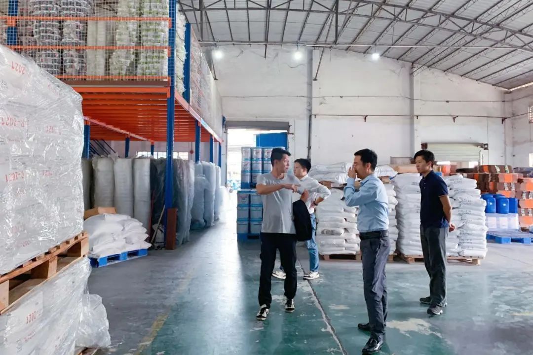 东方雨虹领导们先后参观了我司生产车间、成品及原料等仓库、产品研发实验室等部门。在技术主管廖工讲解下,对我司的生产线、生产流程、产品质量管理体系等有了更深入的认识和了解。