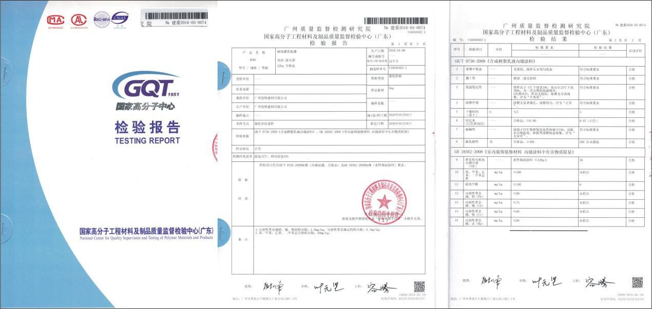 (明治耐洗擦乳胶漆 质检报告)