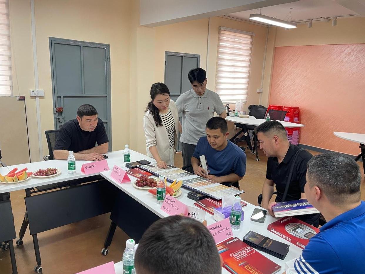 参观结束后,昊特建材张总经理、技术应用廖主管与哈萨克斯坦BI GROUP集团一行进行了更深一步的会谈,对我司的生产工艺、产品研发、产品体系以及企业的发展战略有了更深一步的了解。哈萨克斯坦BI GROUP集团一行对此次参访表示非常满意,对我司在建材涂料领域的专业实力和发展成果给予肯定的评价,更希望日后与我司能有更深一步的合作。